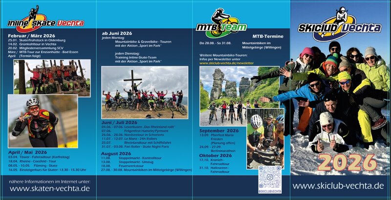 Unser Flyer für 2026 ist startklar! Er beinhaltet viele Termine der Ski-, Skate-, oder MTB Community! Spontan kann immer die ein oder andere interessante Tour hinzukommen. Also dranbleiben um informiert zu sein.